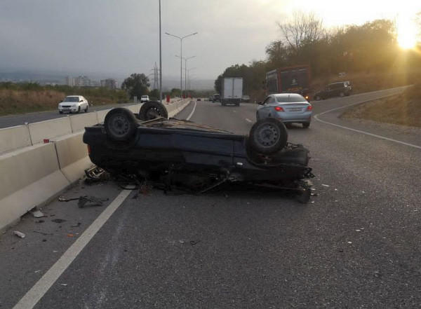 Легковой автомобиль перевернулся после столкновения с грузовиком вблизи Кисловодска