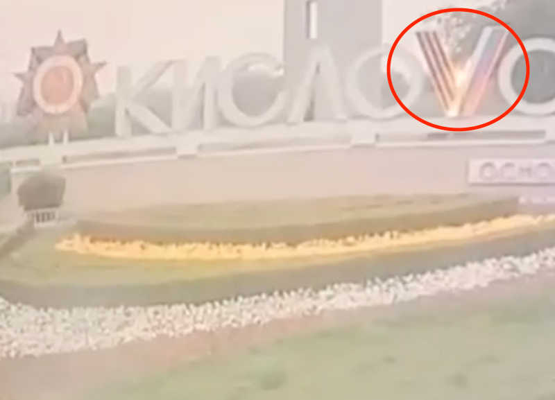Вандал-пироман поджег букву V на стеле в Кисловодске и попал на видео